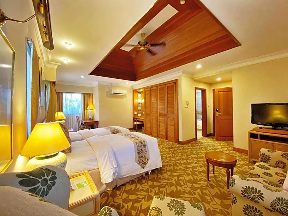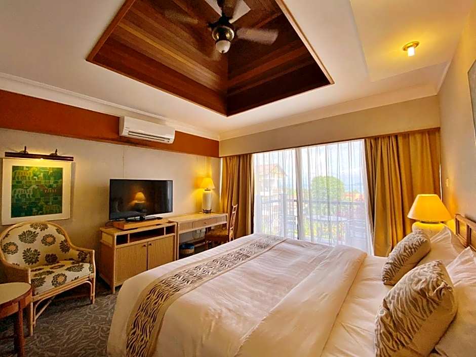 The spacious twin/double room features air conditioning, soundproof walls, a balcony with garden views as well as a private bathroom boasting a bath.